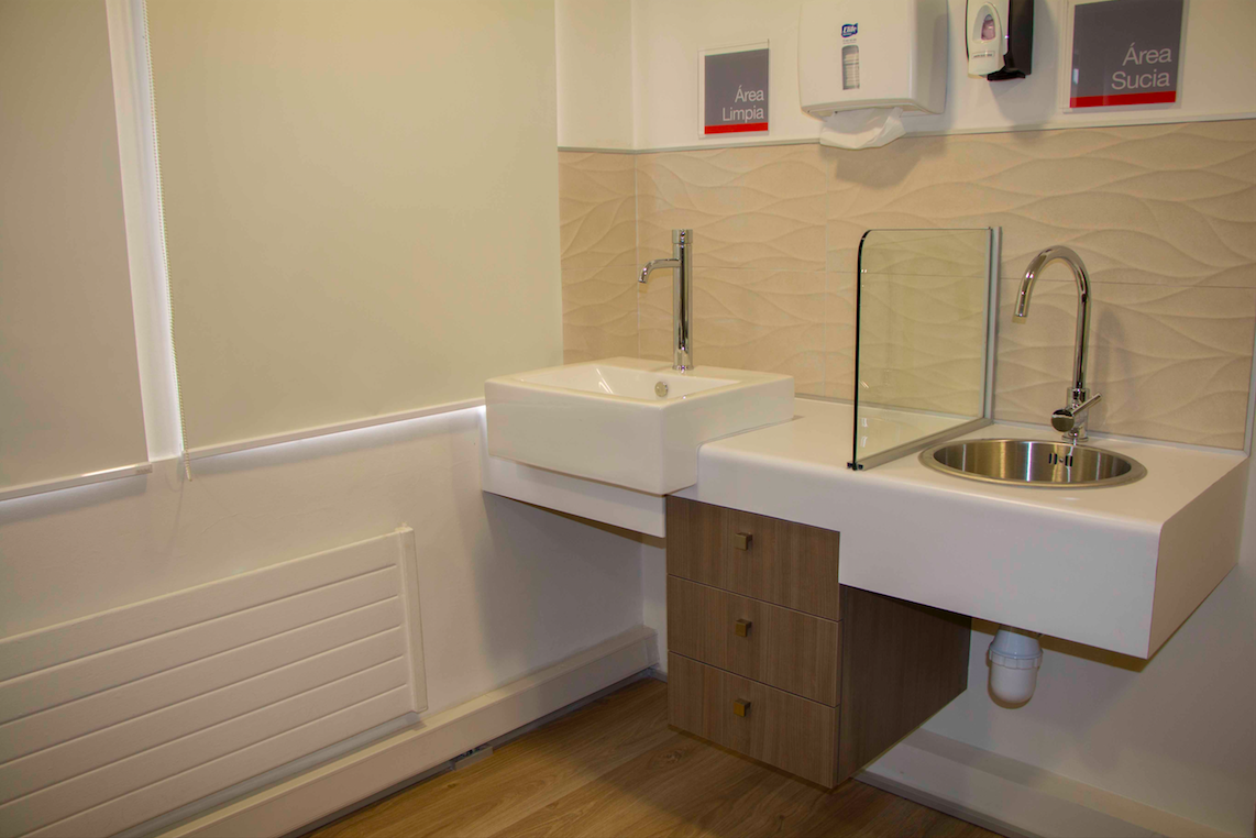 Fabricación e instalación del mobiliario del edificio. A destacar tenemos las puertas de acceso, closet, baños de visitas, escritorios de atención a público, mesones de trabajo en laboratorios.