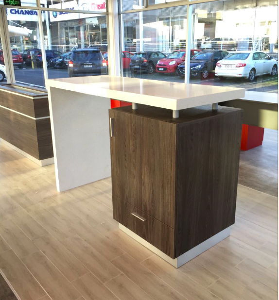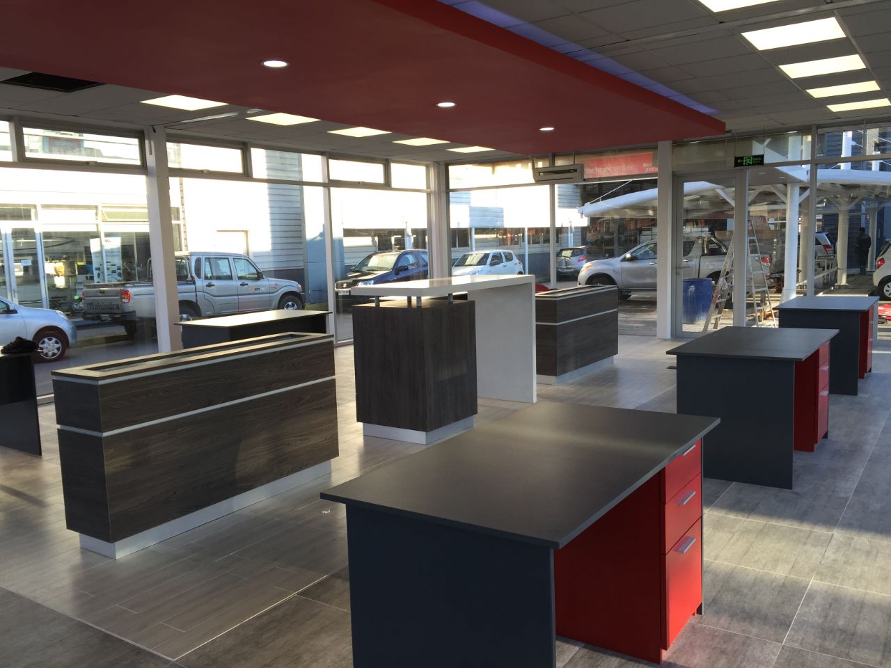 Diseño, fabricación e instalación de mobiliario para local de venta de vehículos usados de lujo.